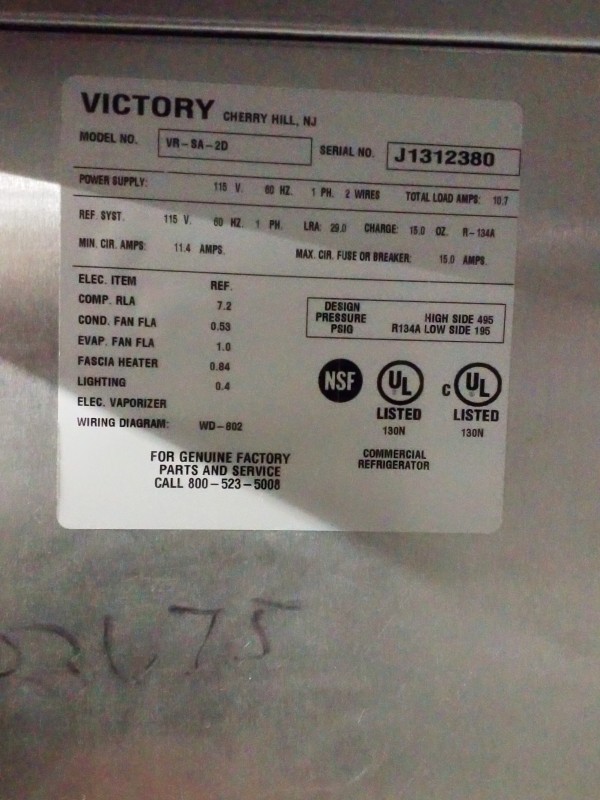 Description: 1 EACH. VICTORY V-SERIES FREEZER