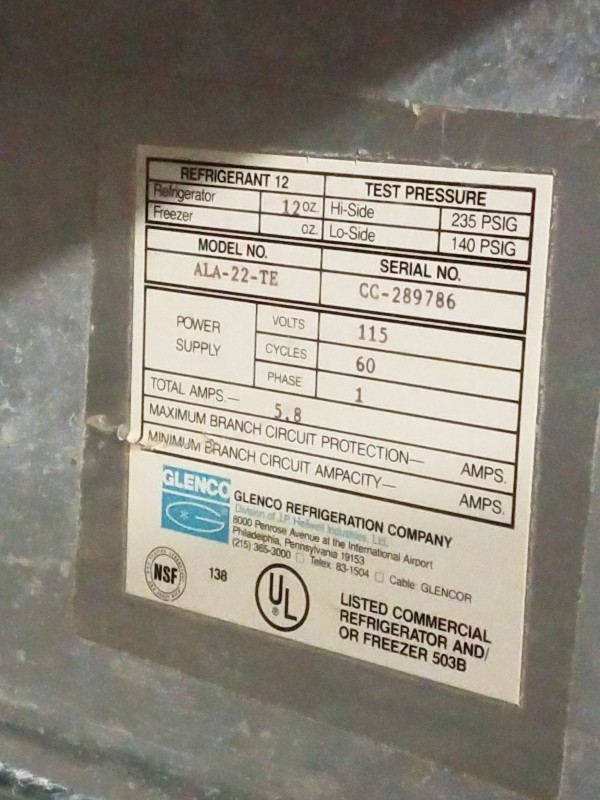 Description: 1 EACH. GLENCO REFIGERATOR