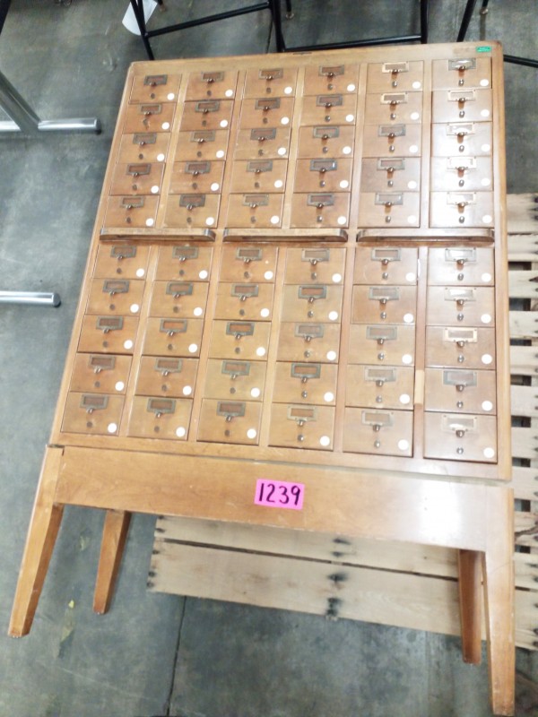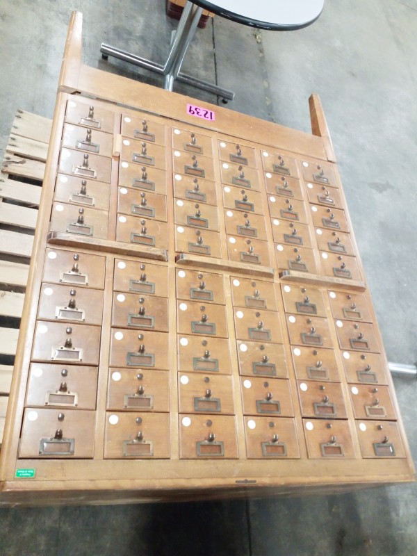 Description: 1 EACH. WOODEN INDEX CARD FILE CABINET (SEE PICS)