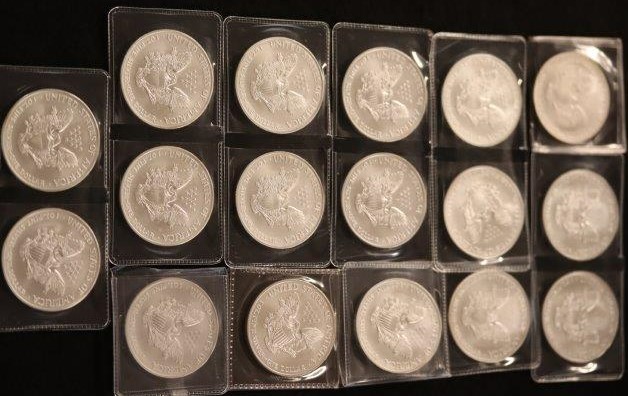 17 - 1OZ SILVER EAGLES; 2004, 16 - 2005