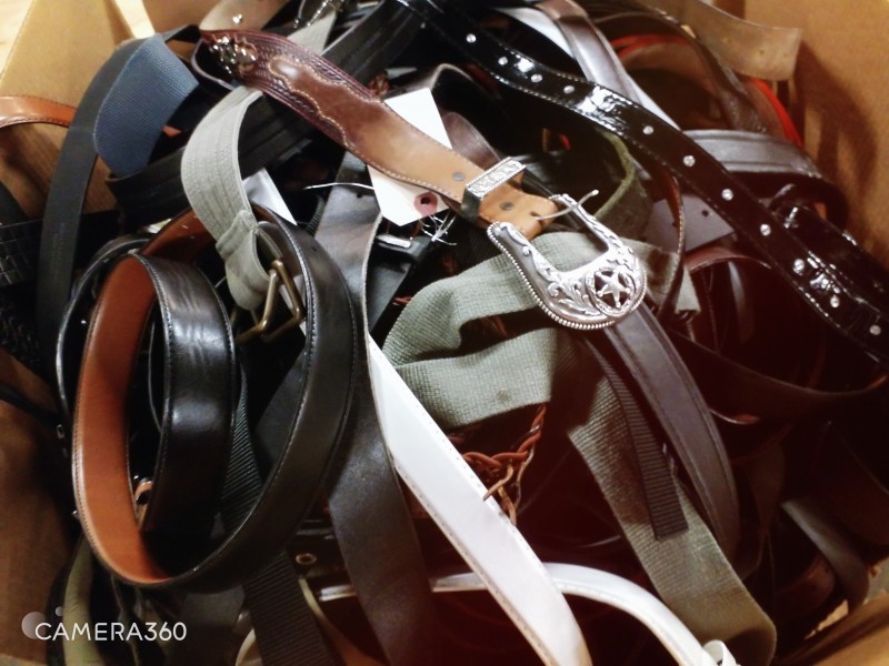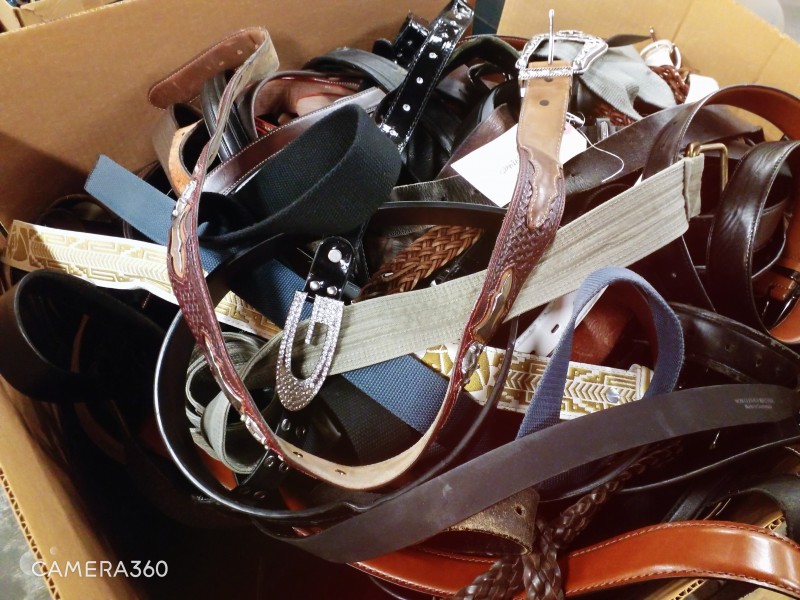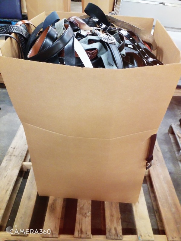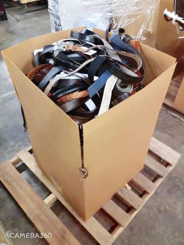 Description: 24"L x 24"W x 36"H Box containing Various sizes / styles of Belts