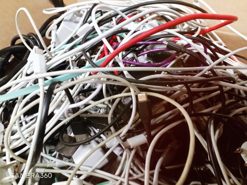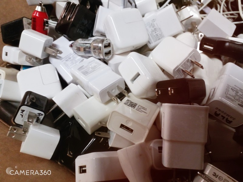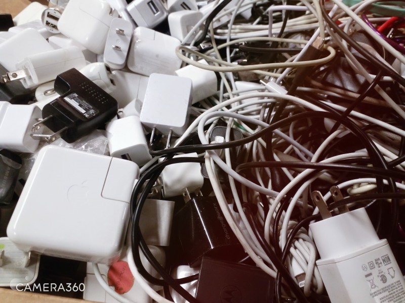Description: 1Box (15"L x 22"W x 7"H) containing various USB / Apple / PC Power Cords and plug-ins as pictured