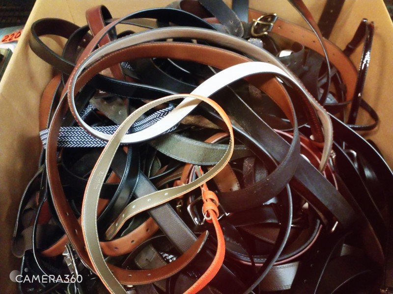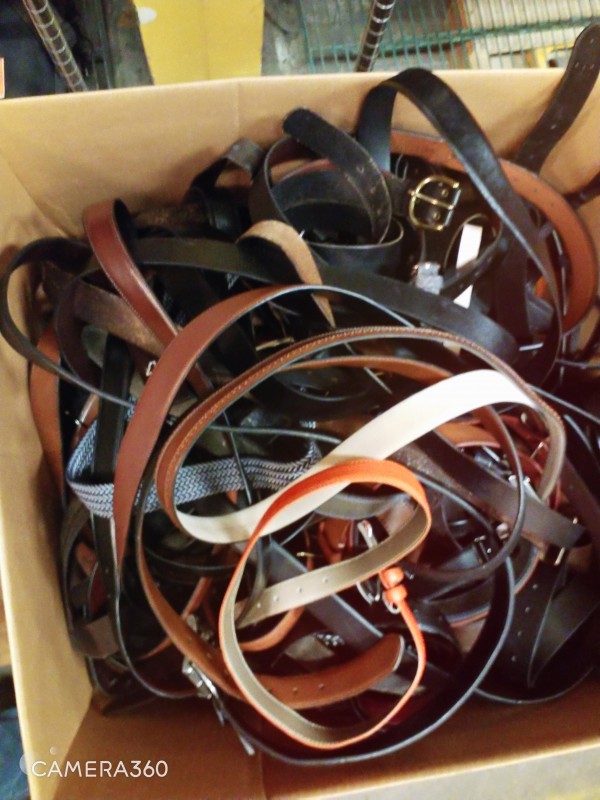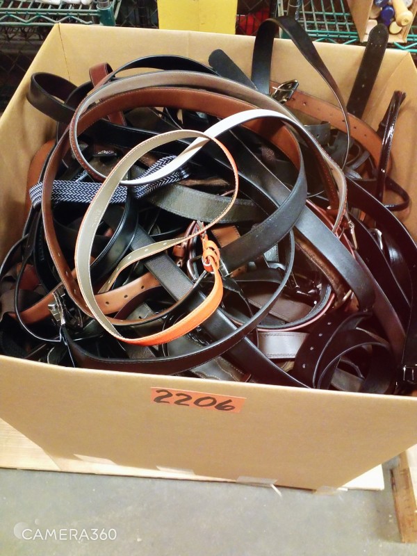 Description: 1 Lot for Contents of 1Box (measuring 24" x 24" x 24"H) containing Various Styles of belts