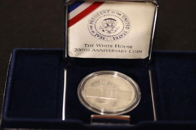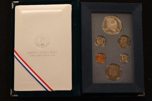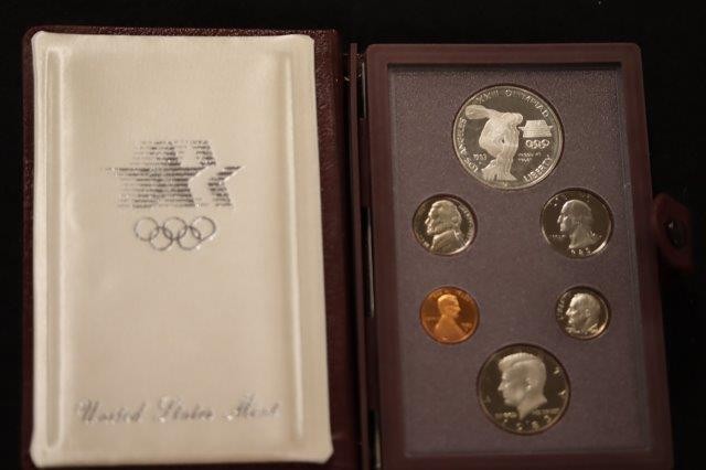 1983 PRESTIEGE SET, 1990 PRESTIEGE SET, 1983 UNCIRCULATED OLYMPIC SILVER DOLLARS P,D,S 3 COIN SET, 1992 WHITE HOUSE 200TH ANNIVERSARY SILVER DOLLAR