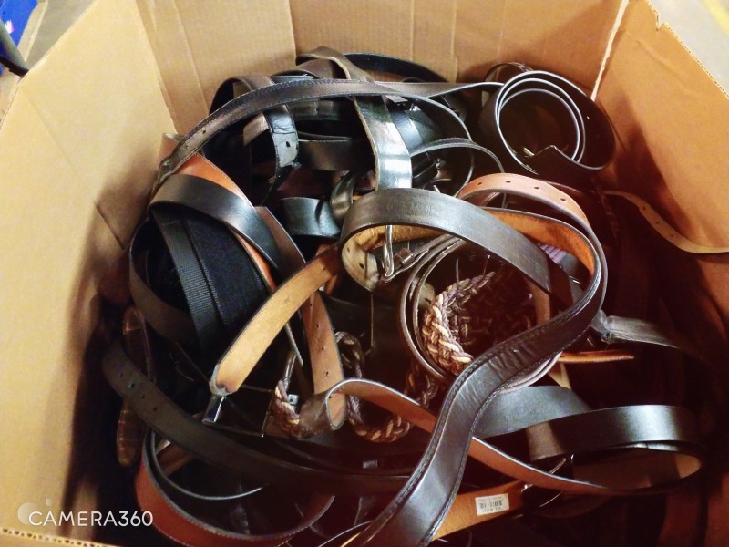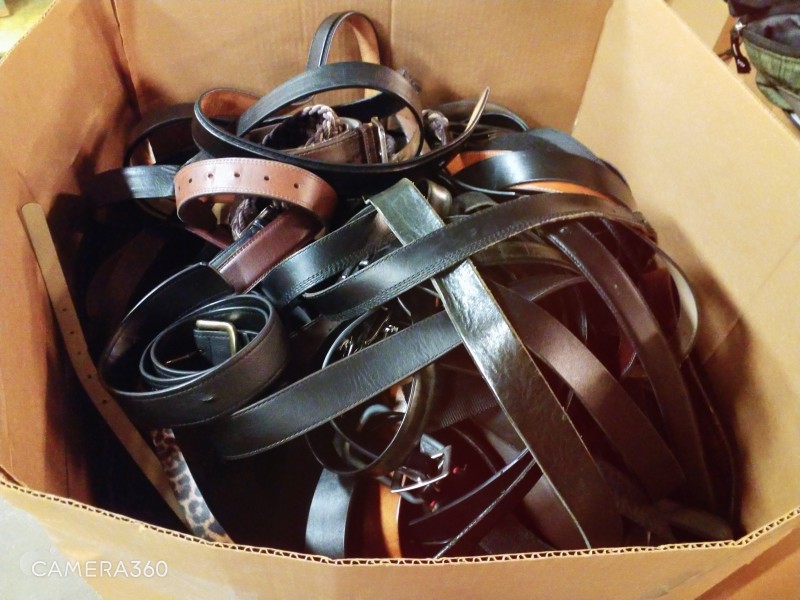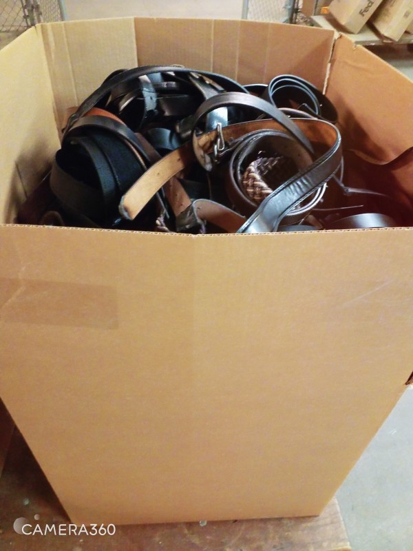 Description:Contents of 1 24" x 24" x 24" Box of Various TSA Belts as pictured