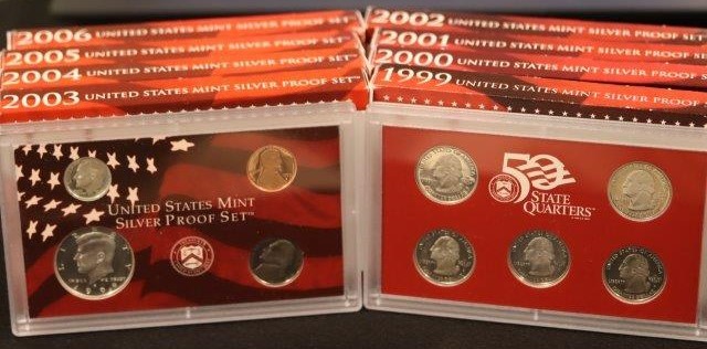 8 U.S. SILVER PROOF SETS; 1999, 2000, 2001, 2002, 2003, 2004, 2005, 2006