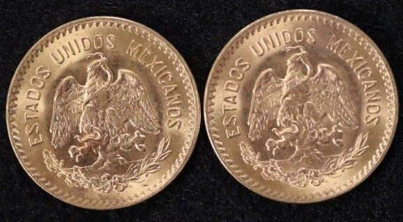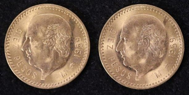 2-1959 MEXICAN 10 PESO GOLD COINS .900 FINE [0.2411 OZ]