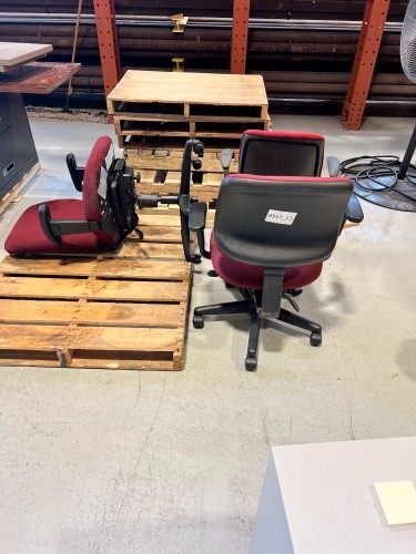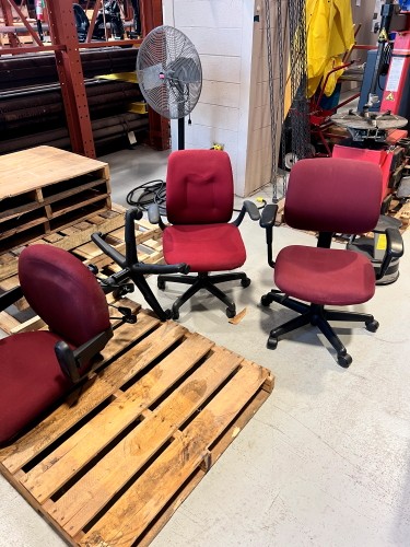 ONE LOT CONTAINING: THREE (3) OFFICE CHAIRS, WITH CASTOR WHEELS, WITH ARM RESTS, COLOR: RED. CONDITION UNKNOWN.