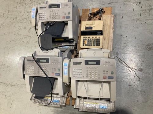 ONE LOT CONTAINING: THREE (3) BROTHER INTELLIFAX SUPER G3/33.6 KBPS BUSINESS CLASS LASER FAX, SERIAL #U61639H4J523505, SERIAL #U61639A0J123510, SERIAL #U61639A0J123488, ONE (1) CANON MP21D 2 COLOR 12 DIGIT CALCULATOR SERIAL #60208828, CONDITION UNKNOWN.