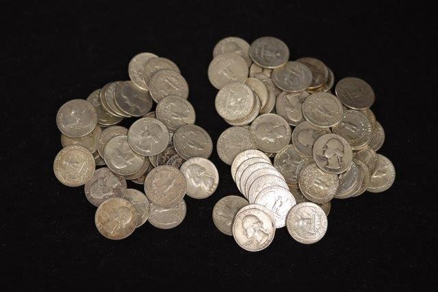 94 WASHINGTON QUARTERS; COMMON MIXED DATES AND MINT MARKS, ALL PRE 1965