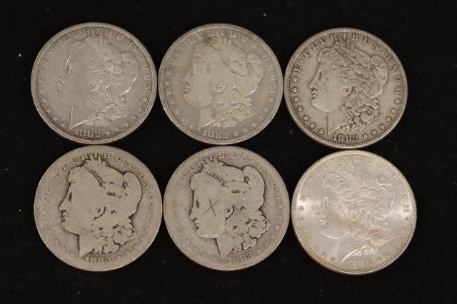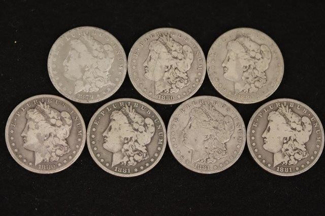 12 MORGAN DOLLARS; 1879, 1880, 1880S, 1880O, 1881, 2-1881O, 1882, 1882O, 2-1883, 1885