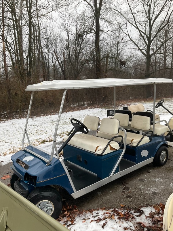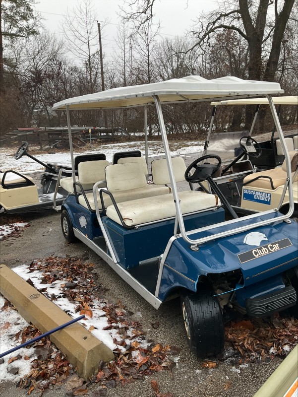 Description: 1996 6 Passenger Villager Cart; Batteries dead; No charger; Damaged