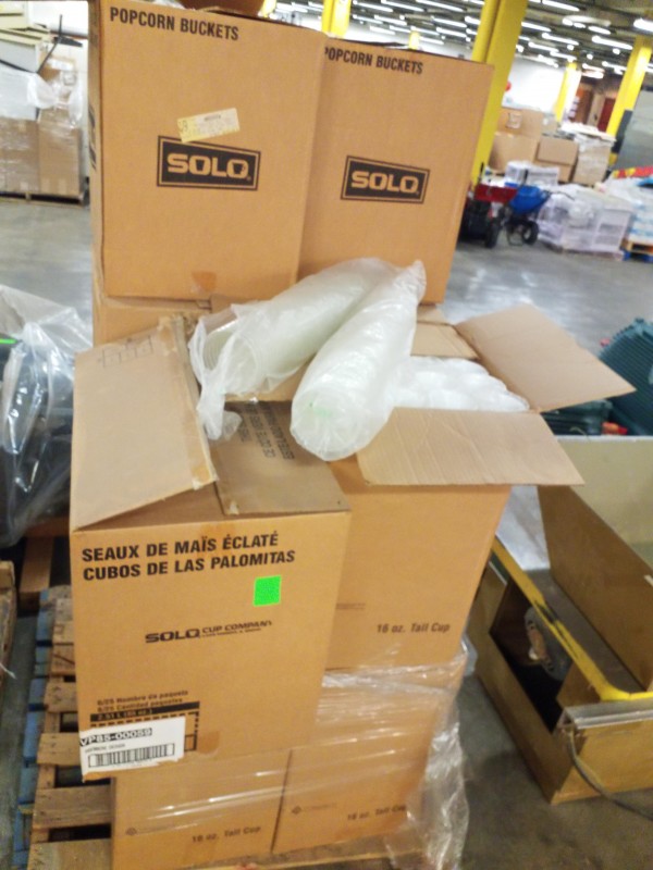 Description: 2-PALLETS MIXED CUPS/POPCORN TUBS Sold as pictured