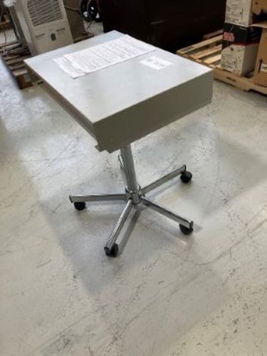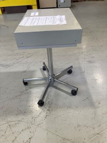 SMALL GLOBAL COMPUTER METAL BEIGE TABLE WITH WHEELS, 23"W X 16"D X 29"H.