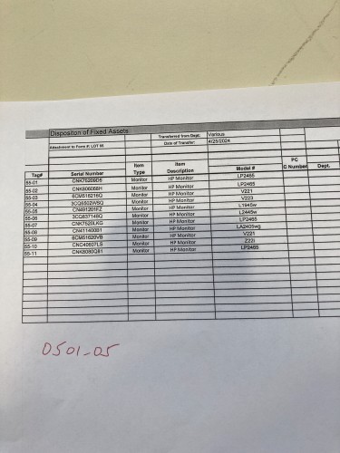 (1) HP MONITOR, MODEL #LA2405WG, SERIAL #CN411400B1.