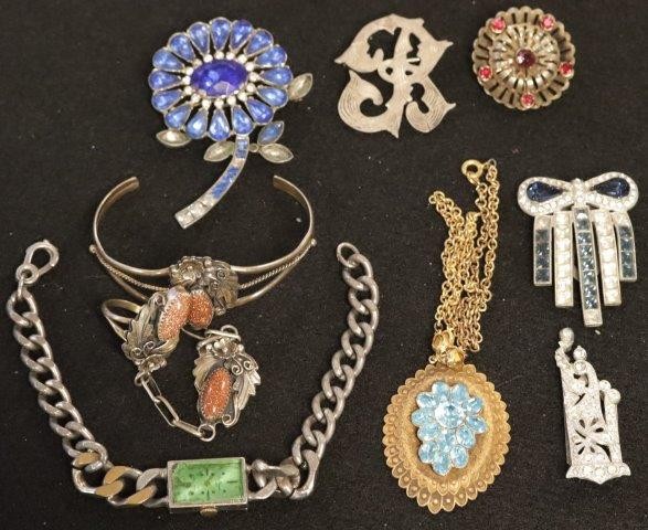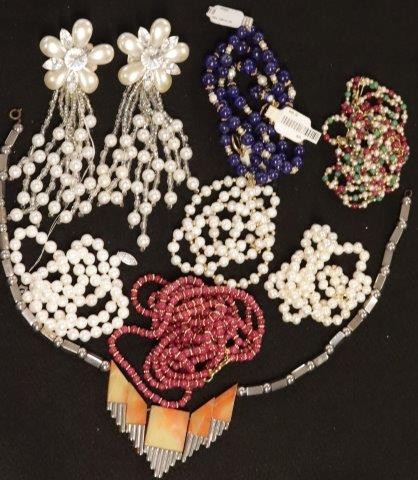 COSTUME JEWELRY; APPROX 34 PIECES INCLUDING TRIFARI PENGUIN PIN, WEISS NECKLACE, MISC NECKLACES, BRACELETS, PINS, CUFF LINKS AND OTHER