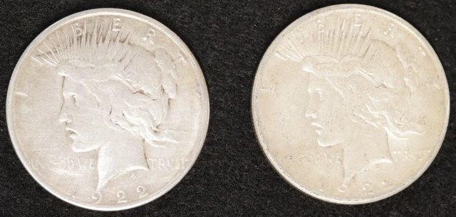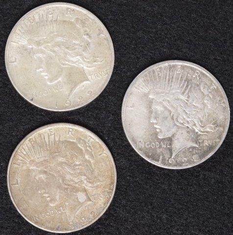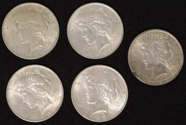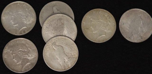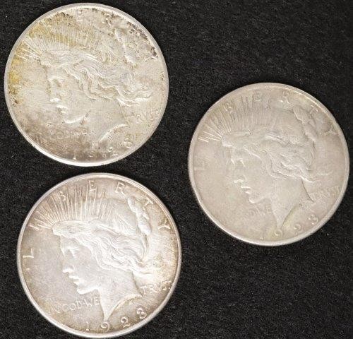 23 PEACE DOLLARS; 7 1922, 3 1922D, 2 1922S, 5 1923, 3 1923S, 1925, 1926D, 1928S