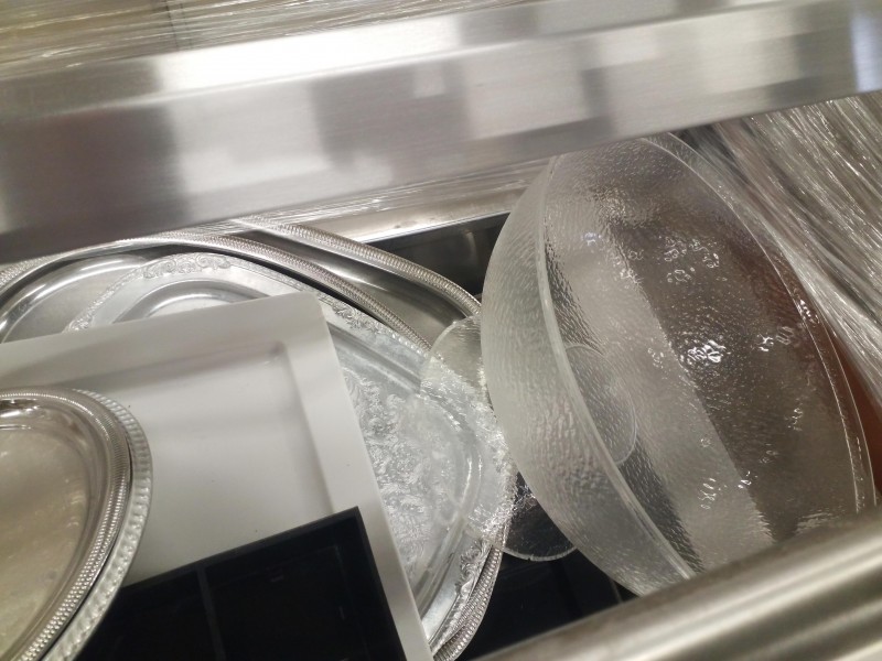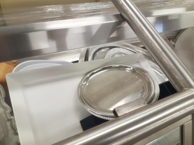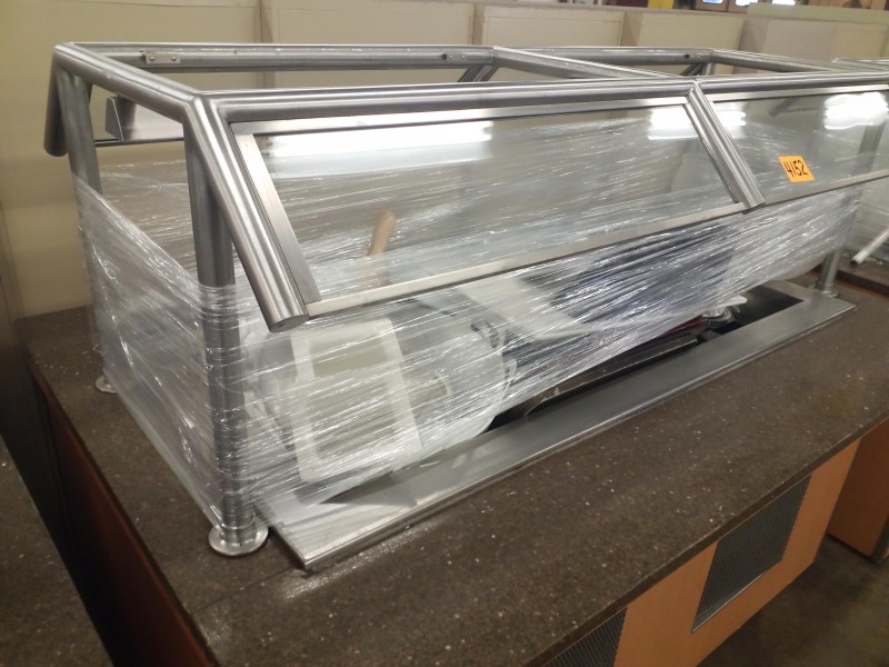 Description: 1 EACH. FOOD SERVICE STATION W/MISC. ITEMS (SOME BROKEN GLASS) SOLD AS PICTURED