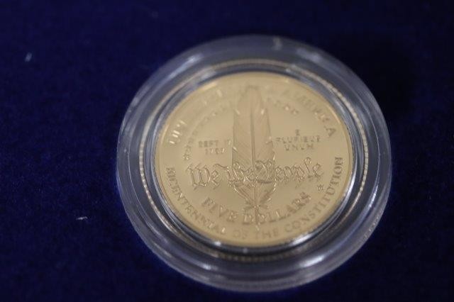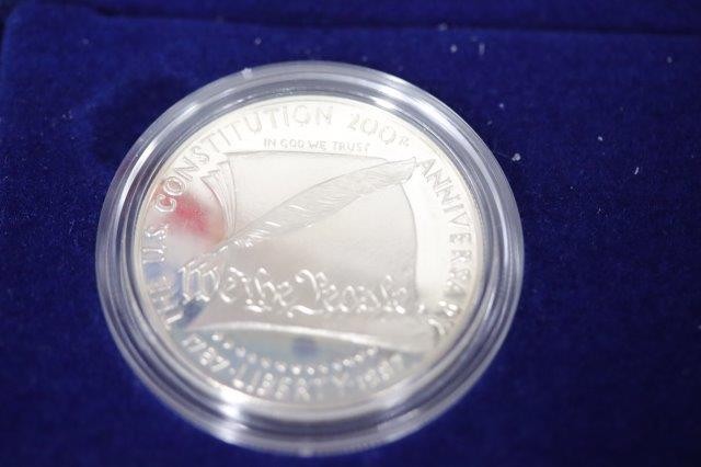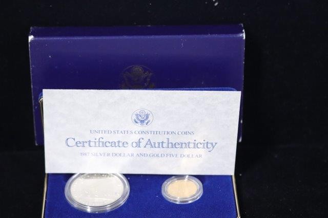 1987 U.S. CONSTITUTION PROOF TWO COIN SET; ONE DOLLAR, FIVE DOLLAR