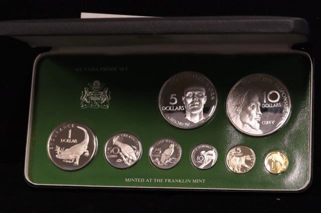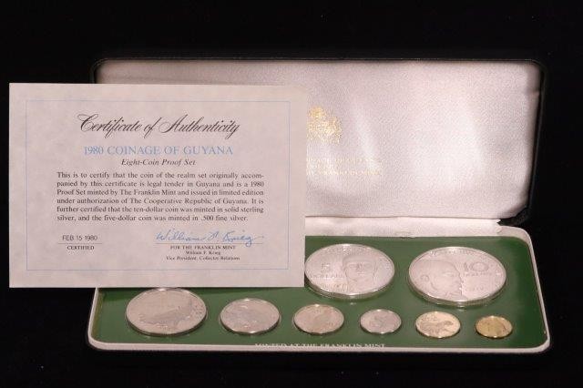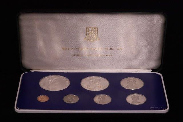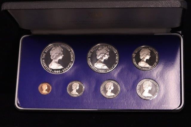 2 FOREIGN PROOF SETS; 1980 BRITISH VIRGIN ISLANDS 7 COIN SET, 1980 COINAGE OF GUYANA EIGHT COIN SET