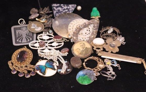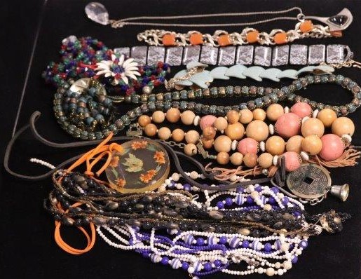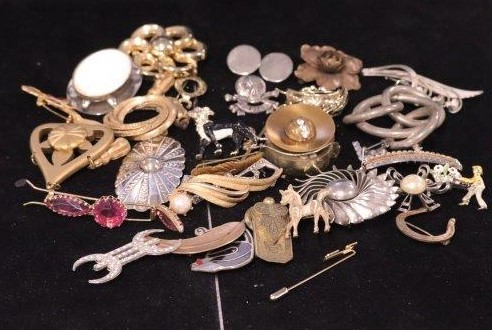 COSTUME JEWELRY; APPROX 114 PIECES CONTAINING; PINS, PENDANTS AND NECKLACES