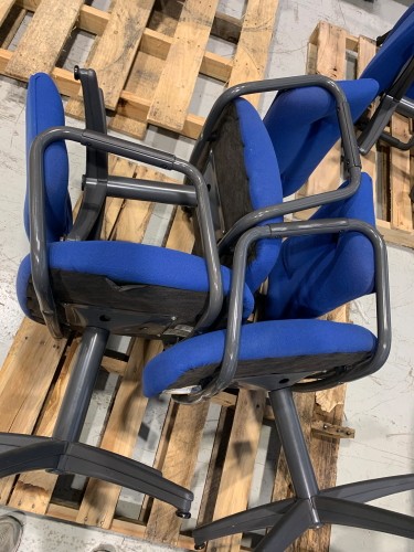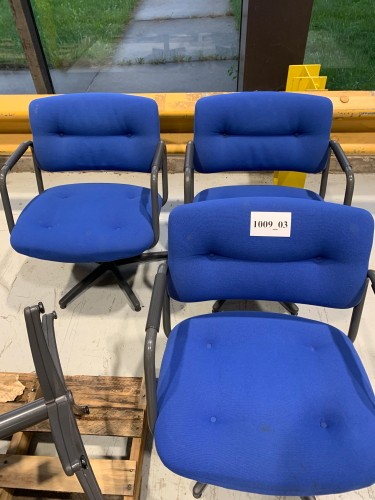 TEN (10) STATIONARY BLUE CONFERENCE CHAIRS (NO WHEELS).