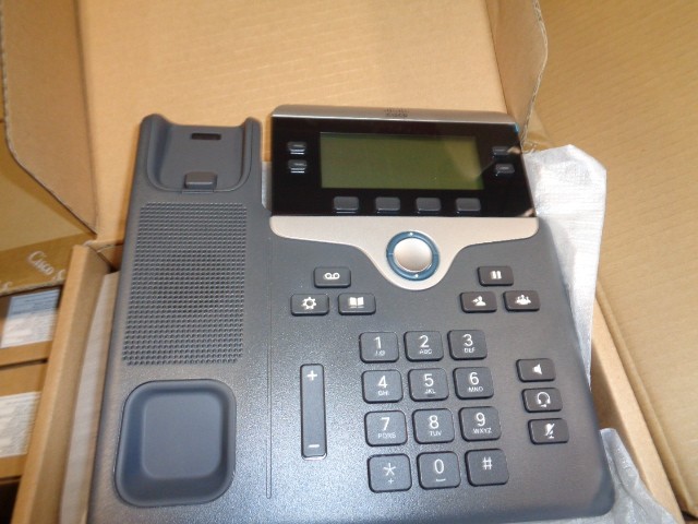 ILLINOIS TOLLWAY LOT OF APPROXIAMATELY 300 CISCO PHONES (NEW) MODEL NUMBERS CP7821K9 AND CP7841K9 ( APPROXIMATE NUMBERS) . PACKAGED ON TWO PALLETS BOX TRUCK NEEDED FOR PICKUP. THERE IS NO GUARANTEE TO CONDITION OF THE PHONE EQUIPMENT. PICK UP ONLY, ITEMS WILL NOT BE SHIPPED.
