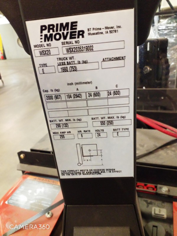 Description:1EACH PRIME MOVER WSX20 PALLET LIFT SOLD AS PICTURED