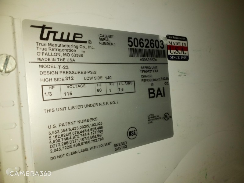 Description: EACH. TRUE REFRIGERATOR (DAMAGE ON DOOR) sold as pictured