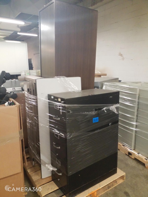 Description: 1 PALLET CONTAINING OFFICE FURNISHINGSTABLE/FILE CABINET AS SHOWN sold as pictured