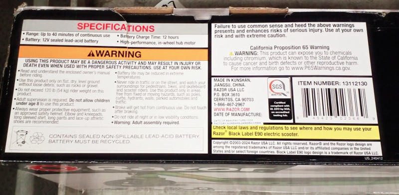 TSA RAZOR E 90 ELECTRIC HUB MOTOR SCOOTER