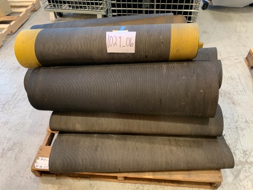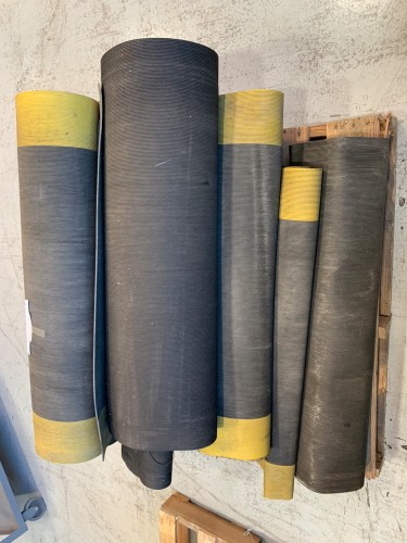 TWELVE (12) BLACK RUBBER FLOOR MATS, ASSORTED LENGTH SIZES, 36 IN. WIDE.