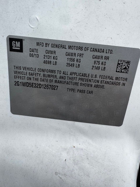 2013 Chevrolet Impala - UNKNOWN IF THERE ARE ANY MECHANICAL ISSUES. MAY HAVE A/C, P/S, P/W, P/L, ABS, AM/FM, AUTOMATIC TRANSMISSION. OPTIONS MAY NOT WORK. THE ATTACHED PICTURES OR THIS DESCRIPTION MAY NOT INDICATE THE ACTUAL CONDITION OF THIS ITEM. WE DO NOT PROVIDE ASSISTANCE WITH TIRE INFLATION OR MECHANICAL ISSUES. VEHICLE MAY HAVE A DEAD BATTERY AND WILL NEED TO BE JUMPED TO START. ***1 KEY AND FOB***
