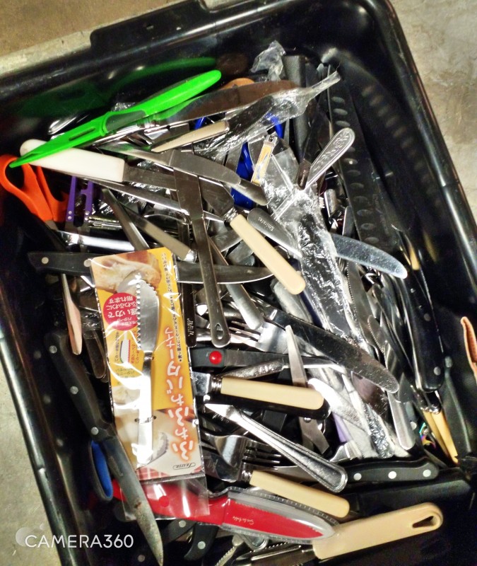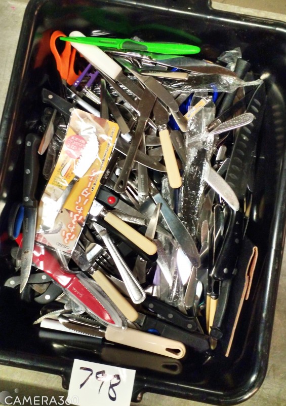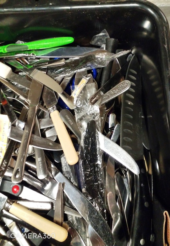 ASSORTED HOUSEHOLD KNIVES/ CUTLERLY & MISCELLANEOUS