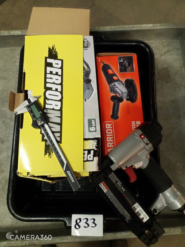 TSA VARIOUS TOOLS - PERFORMAX HAND PLANNER, PORTER CABLE BRAD NAILER, WARRIOR ANGLE GRINDER, ORION CALIPER