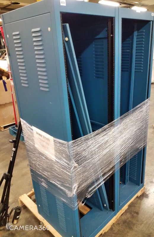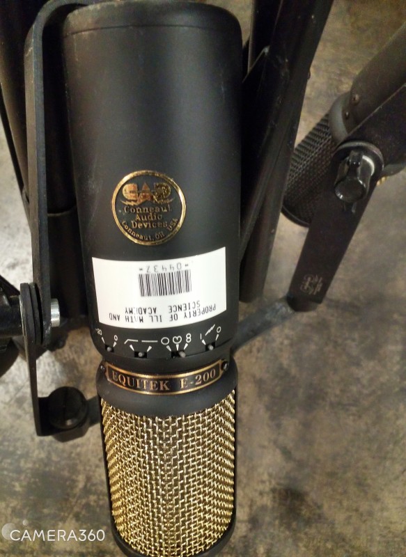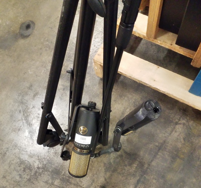SERVER RACKS (QTY 2), WOODEN TABLE, MICROPHONE STAND, EQUITEK E-200 MICROPONES (QTY 2)
