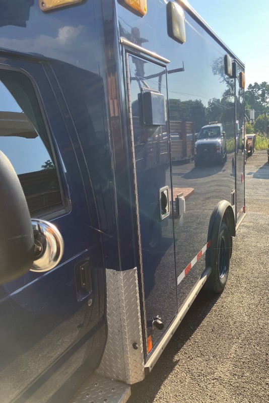 Paint is likely in overall poor condition, with peeling and fading. Dents, dings, and scratches as consistent with vehicle age, mileage and use or worse. Rust may or may not appear on several areas around the vehicle. May or may not have undercarriage or structural rust damage. Decal and sticker remnants may remain on paint. Other paint flaking and surface rust may be present. There may be holes from removal of communication antennas and equipment.
