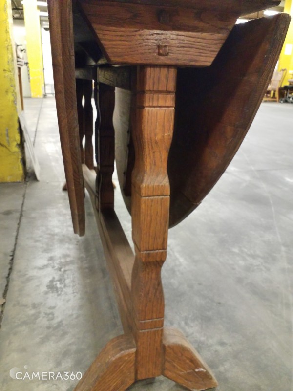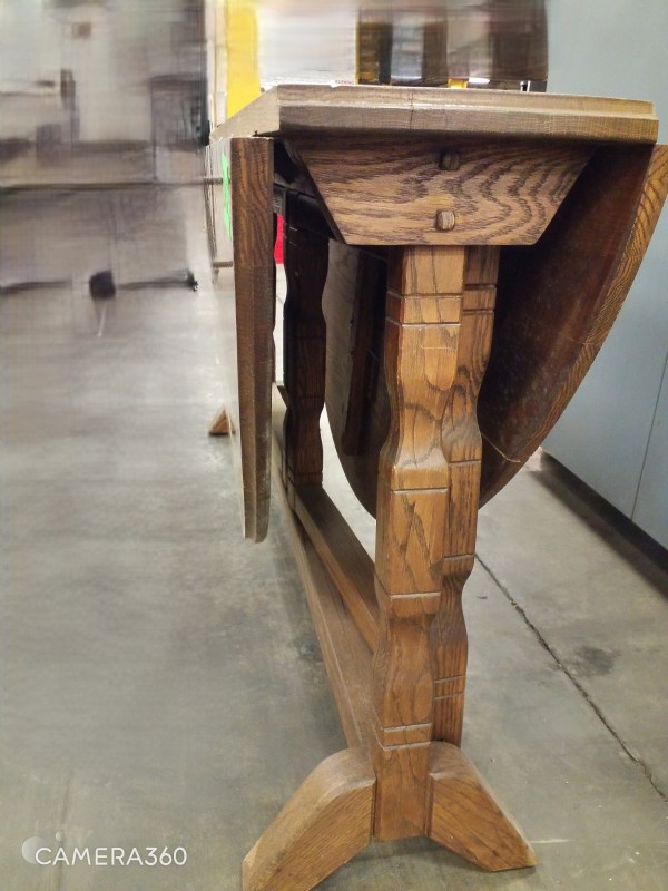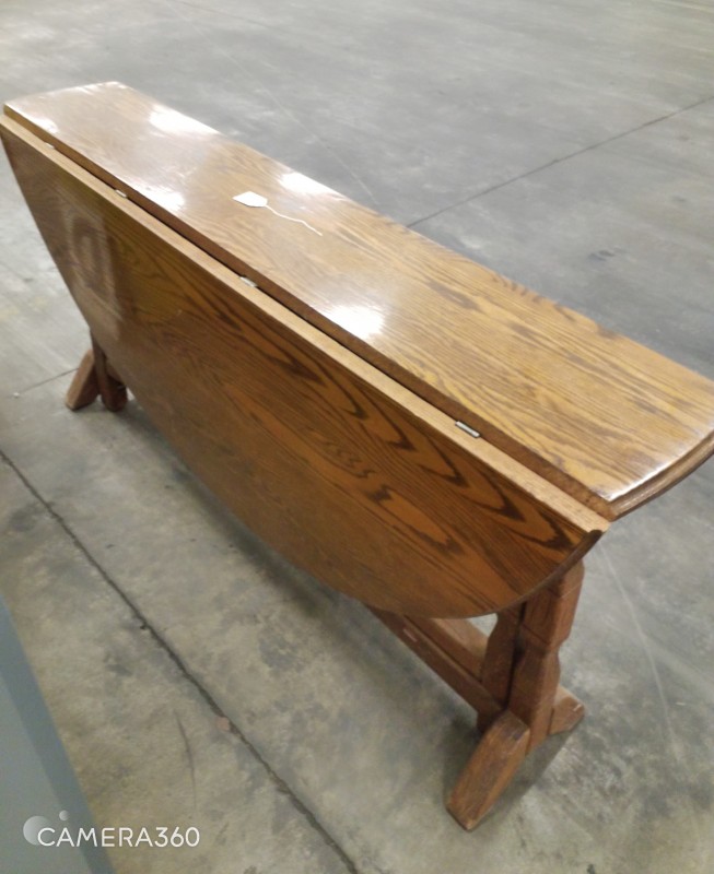ROUND WOOD TABLE WITH FOLD DOWN LEAF​