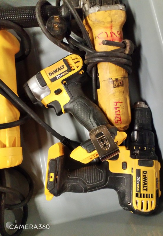 ASSORTED DEWALT TOOLS - DRILL IMPACT DRIVER DRILL DRIVER, ANGLE GRINDERS,& SCREWDRIVING BIT SET