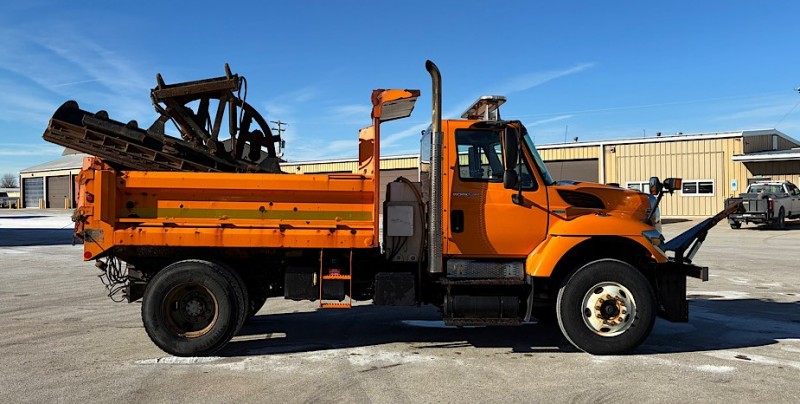 T47442 2010 INTL 7400 1HTWDAAN2AJ276418 10732 Hours - Engine has issues and could quit running at any time, rear lights not hooked up, some hydraulic hoses not hooked up, bed has multiple holes in it. Bed on truck came from different truck. Condition Unknown. Comes with Spreader and Plow.