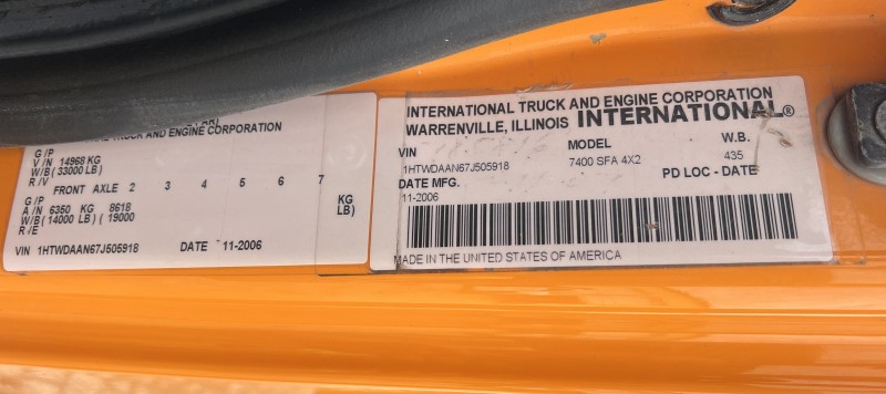 $3,500 T45014 2007 INTL 7400 1HTWDAAN67J505918 10268 Hours - Ran when parked. Battery. Driver Seat missing. AC does not work. Condition Unknown. Comes with Plow and Spreader.