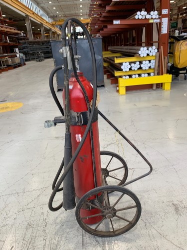 ONE (1) KIDDE, MODEL #50 SEAT TYPE, C02 FIRE EXTINGUISHER ON WHEELS, CONDITION UNKNOWN, BUY AS IS.
