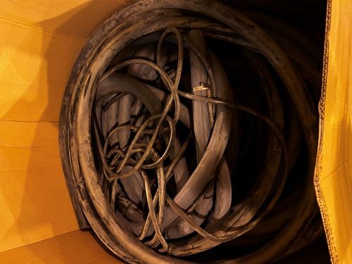 THREE (3) PALLETS, APPROX. 4,000 LBS OF SHEATHED, HIGH VOLTAGE, HEAVY GAUGE SO CORD (INSULATED COPPER WIRE)