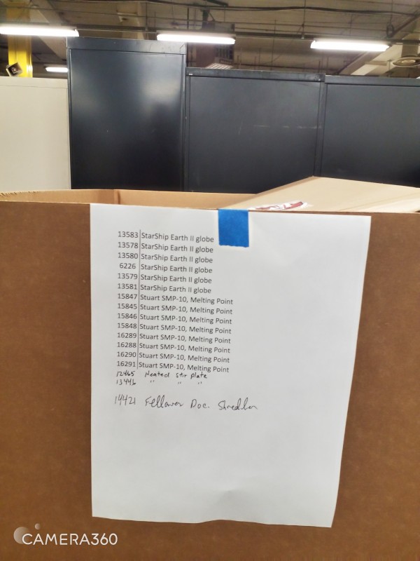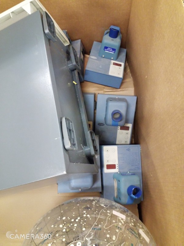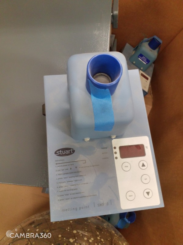 GAYLORD BOX OF MISC ITEMS -EARTH GLOBES, STYART SMP-10 MELTING POINT APPARATUS