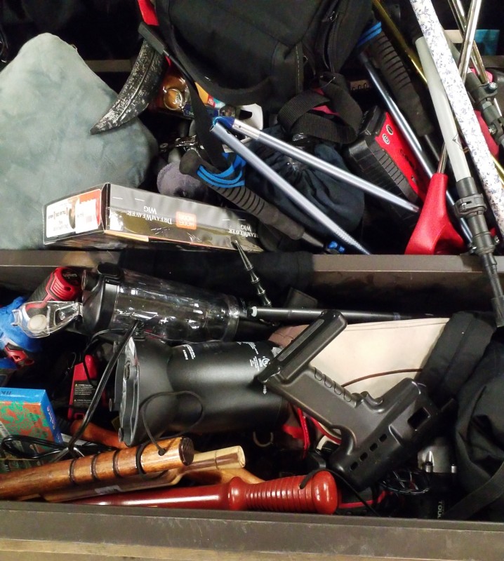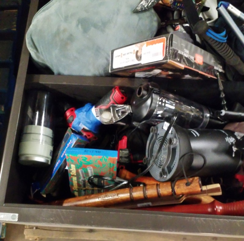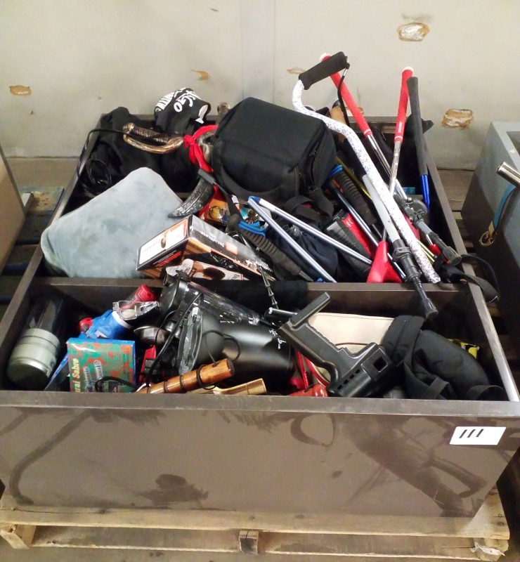 LOT # 111 TSA BOOKCASE OF VARIOUS ITEMS