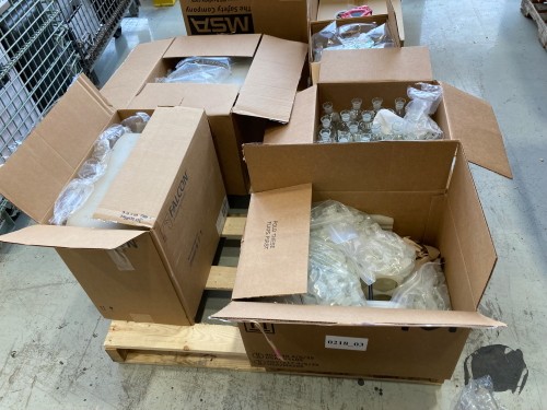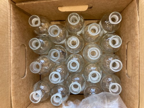 ONE (1) BOX APPROXIMATELY 60 GLASS BOTTLES.