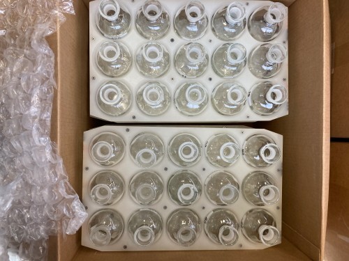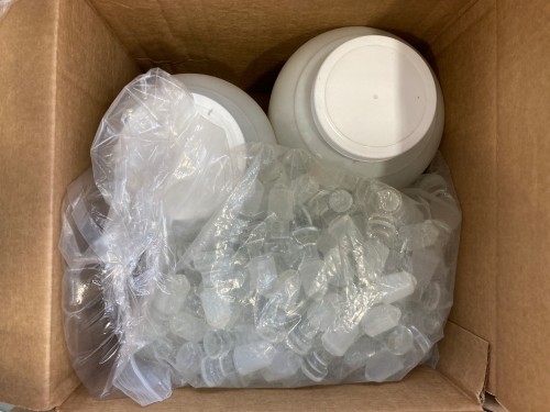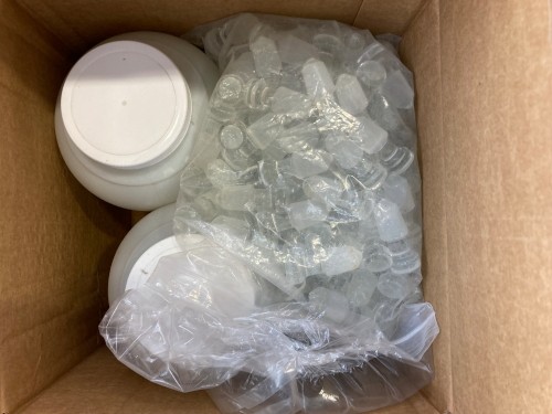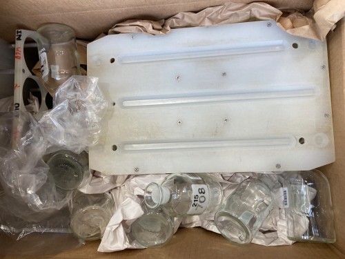 ONE (1) BOX APRROXIMATELY 57 GLASS BOTTLES, 6 RACKS.