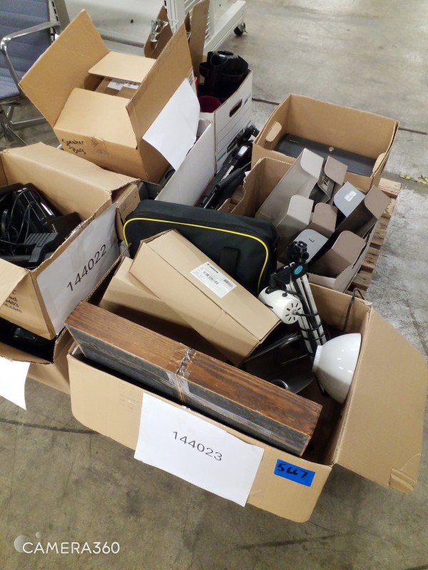 PALLET OF MISCELLANIOUS OFFICE ITEMS,CAMERAS, SOUND BARS & EAR PROTECTION