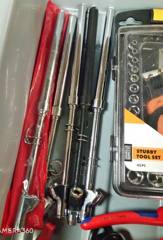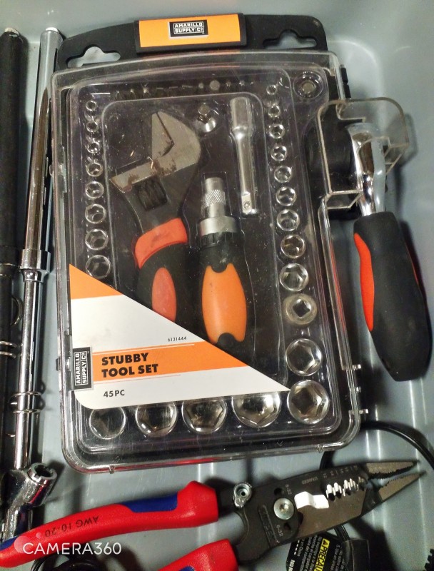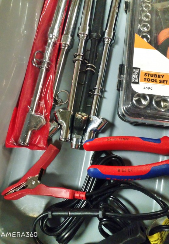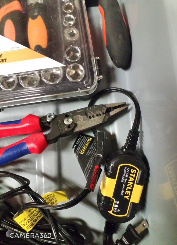STUBBY TOOL SET, TIRE PRESSURE GAGES, STANLEY BATTERY MAINTAINER, MISC