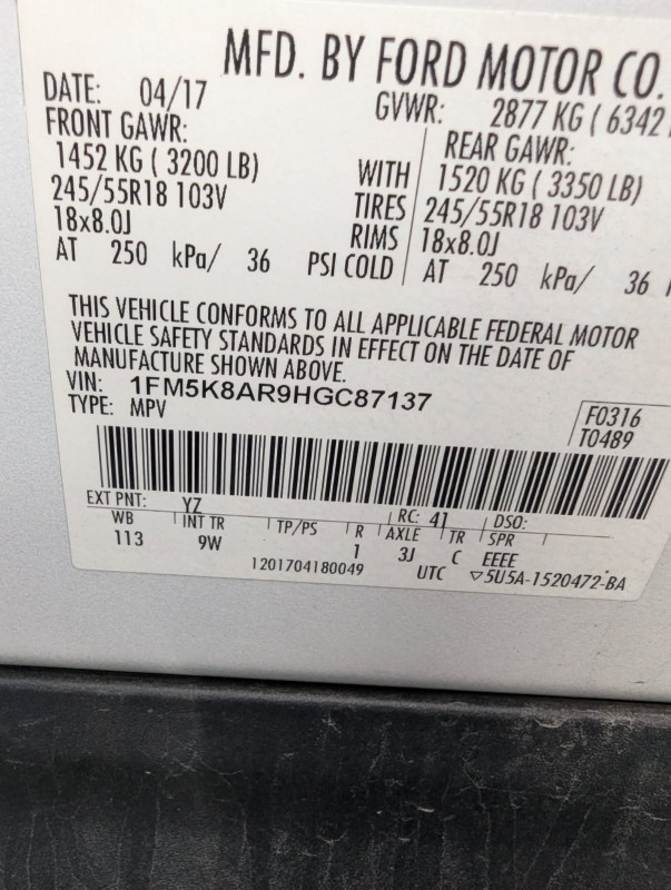 2017 Ford Explorer - UNKNOWN IF THERE ARE ANY MECHANICAL ISSUES. MAY HAVE A/C, P/S, P/W, P/L, ABS, AM/FM, AUTOMATIC TRANSMISSION. OPTIONS MAY NOT WORK. THE ATTACHED PICTURES OR THIS DESCRIPTION MAY NOT INDICATE THE ACTUAL CONDITION OF THIS ITEM. WE DO NOT PROVIDE ASSISTANCE WITH TIRE INFLATION OR MECHANICAL ISSUES. VEHICLE MAY HAVE A DEAD BATTERY AND WILL NEED TO BE JUMPED TO START.